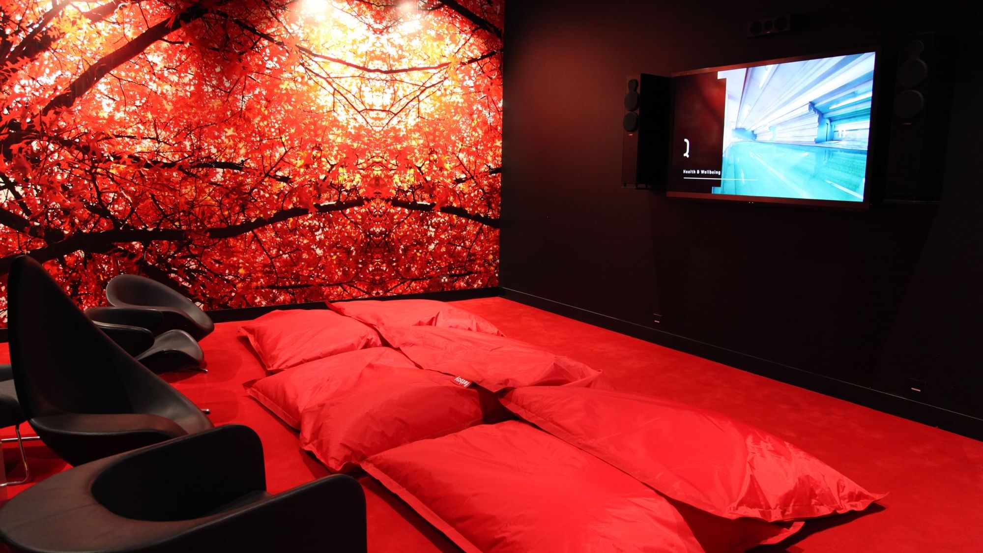 Enjoy a movie on the big screen in the cinema room filled with bean-bags.